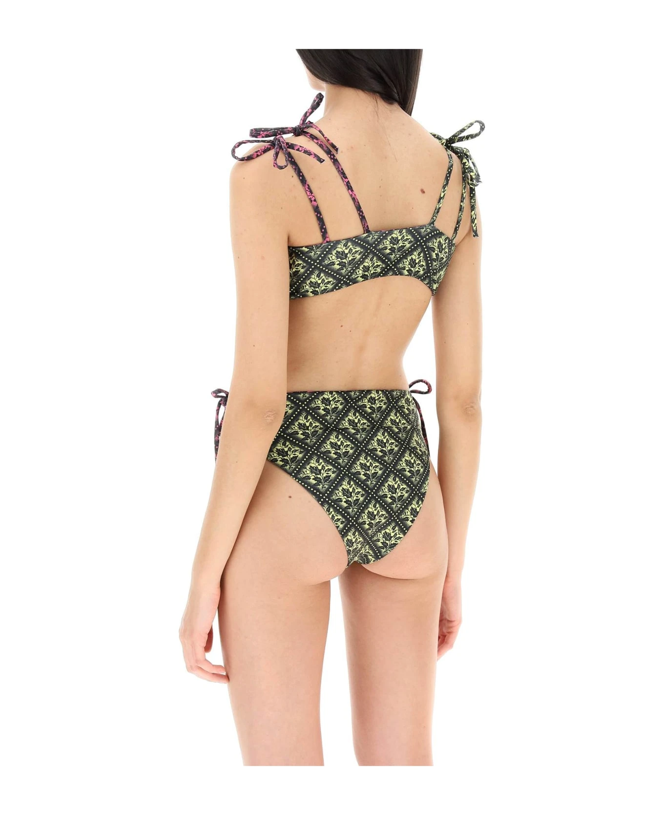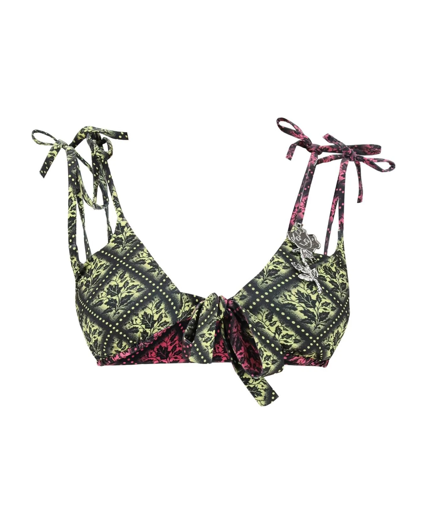 Reversible bikini top from Chopova Lowena crafted from technical jersey and featuring double adjustable ties and a silver metal charm. The model is 177 cm tall and wears size S.