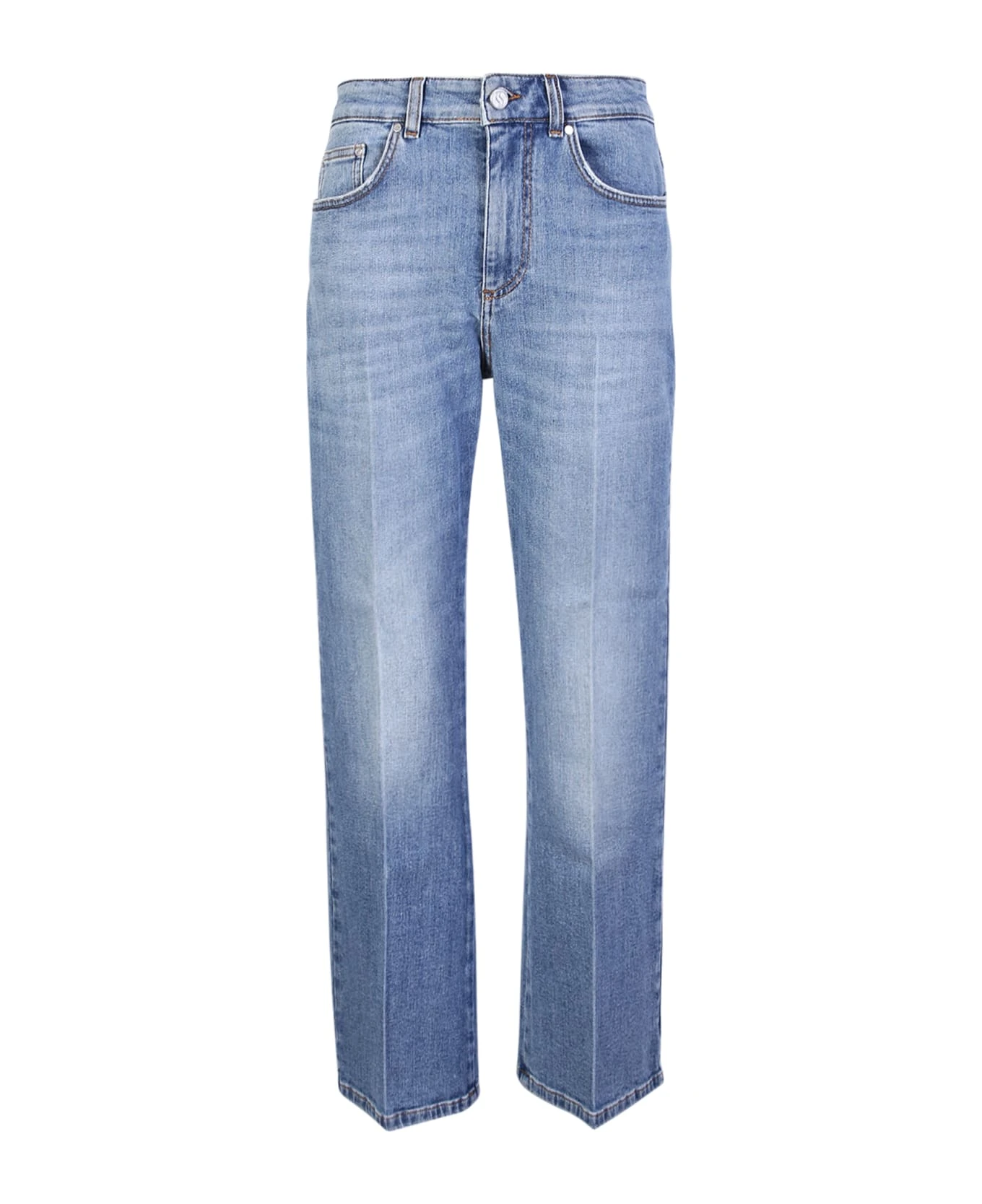 Front button and zip. Belt loops. Classic five pockets. Logo details. Color: Blue