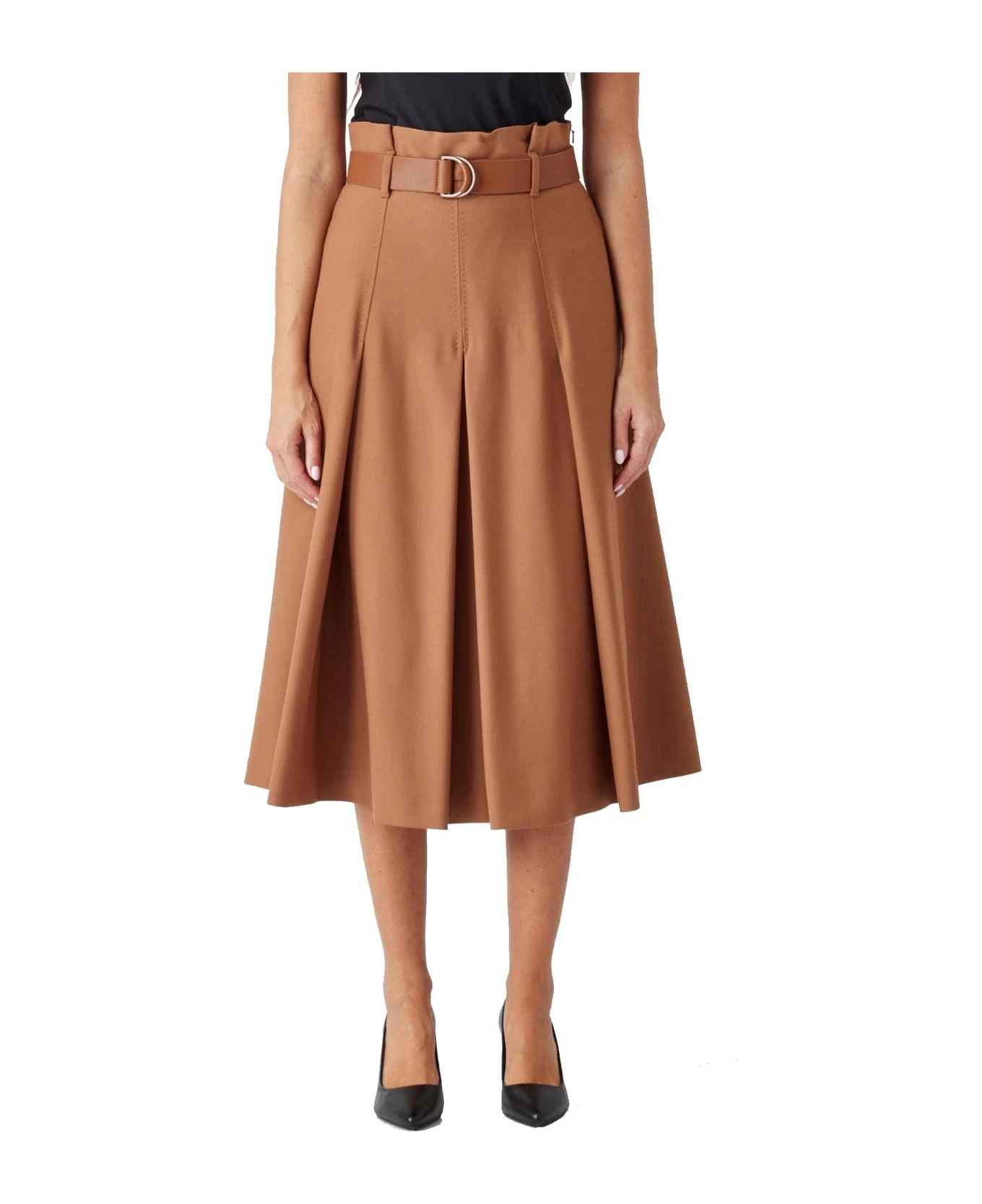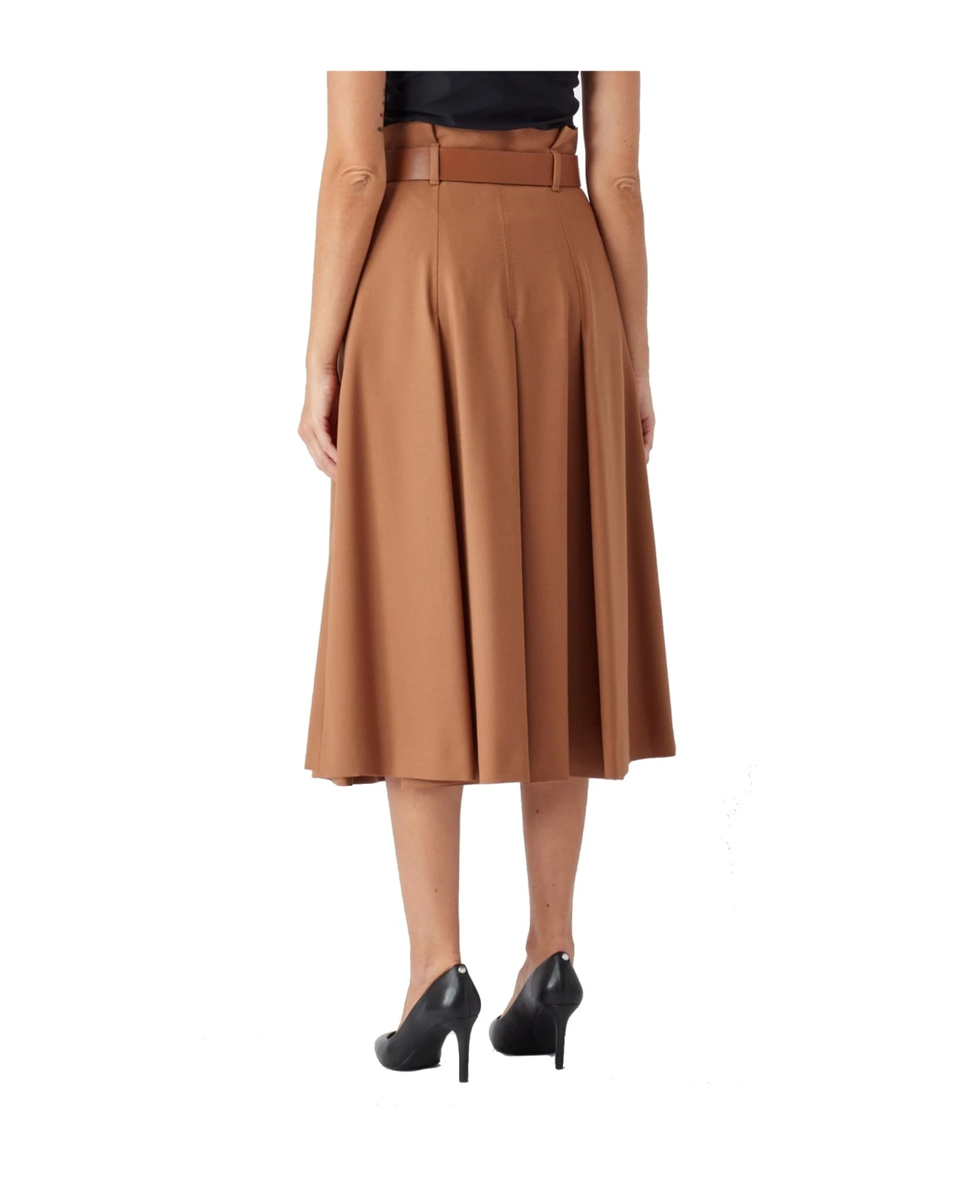 – Composition: 97% wool 3% elastane – Fully lined – Side zip fastening – Leather belt – Belt loops – Flared hem