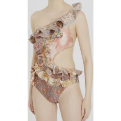 Zimmermann Multicolor Swimsuit With All-over Paisley Motif And Belt In Stretch Polyamide Woman
