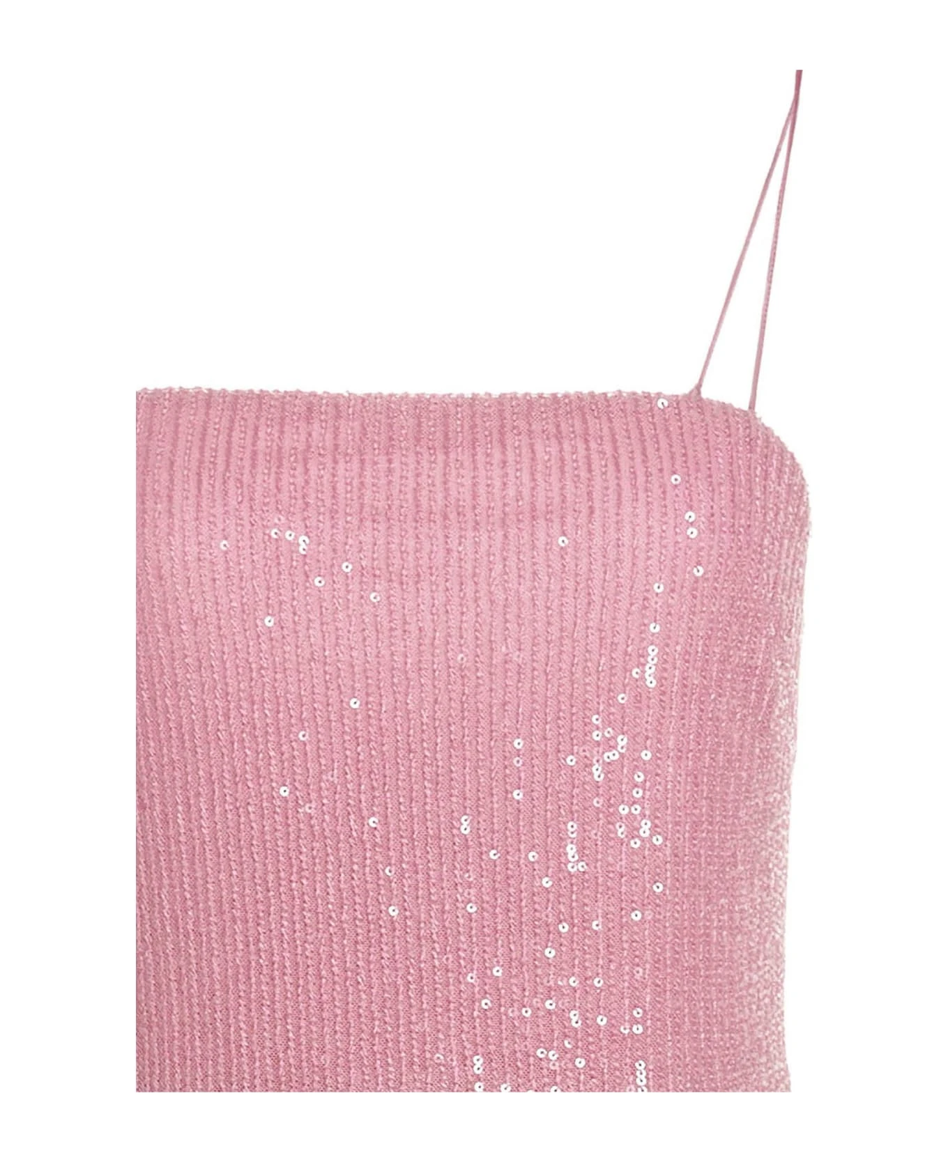 Transparent Sequins’ fabric dress withll-over sequins, off-the-shoulder style and a back zip closure. : This product is made in sustainable materials.