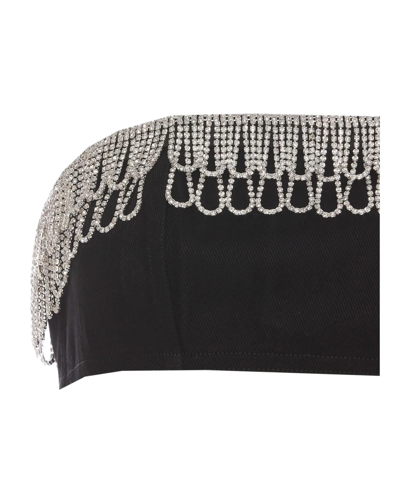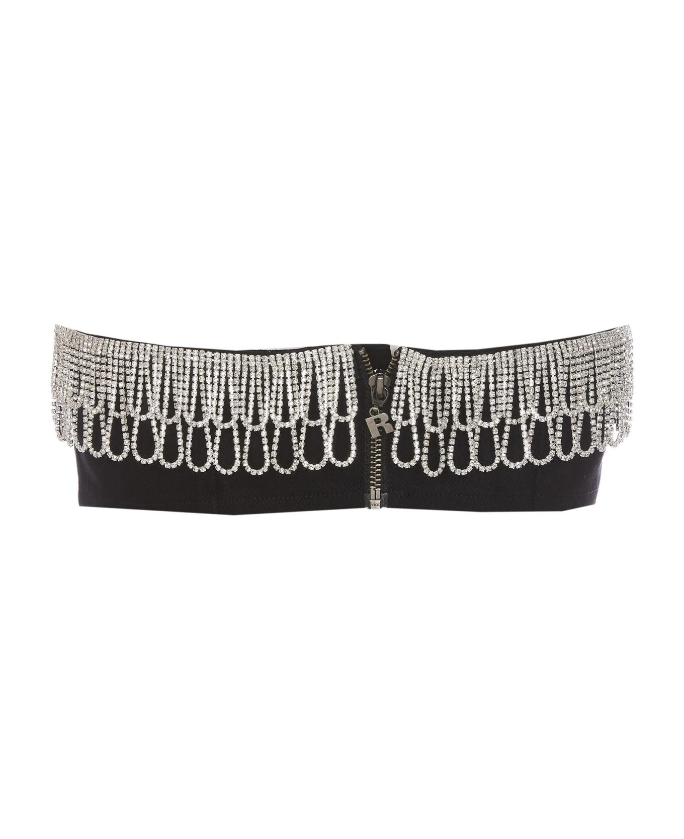 Rotate black Twill Bandeau top, crystals details, zip closure on the back