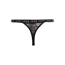 DSQUARED2 D-squared2 Woman’s Black Lace Thong Briefs With Logo Print