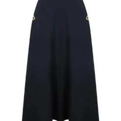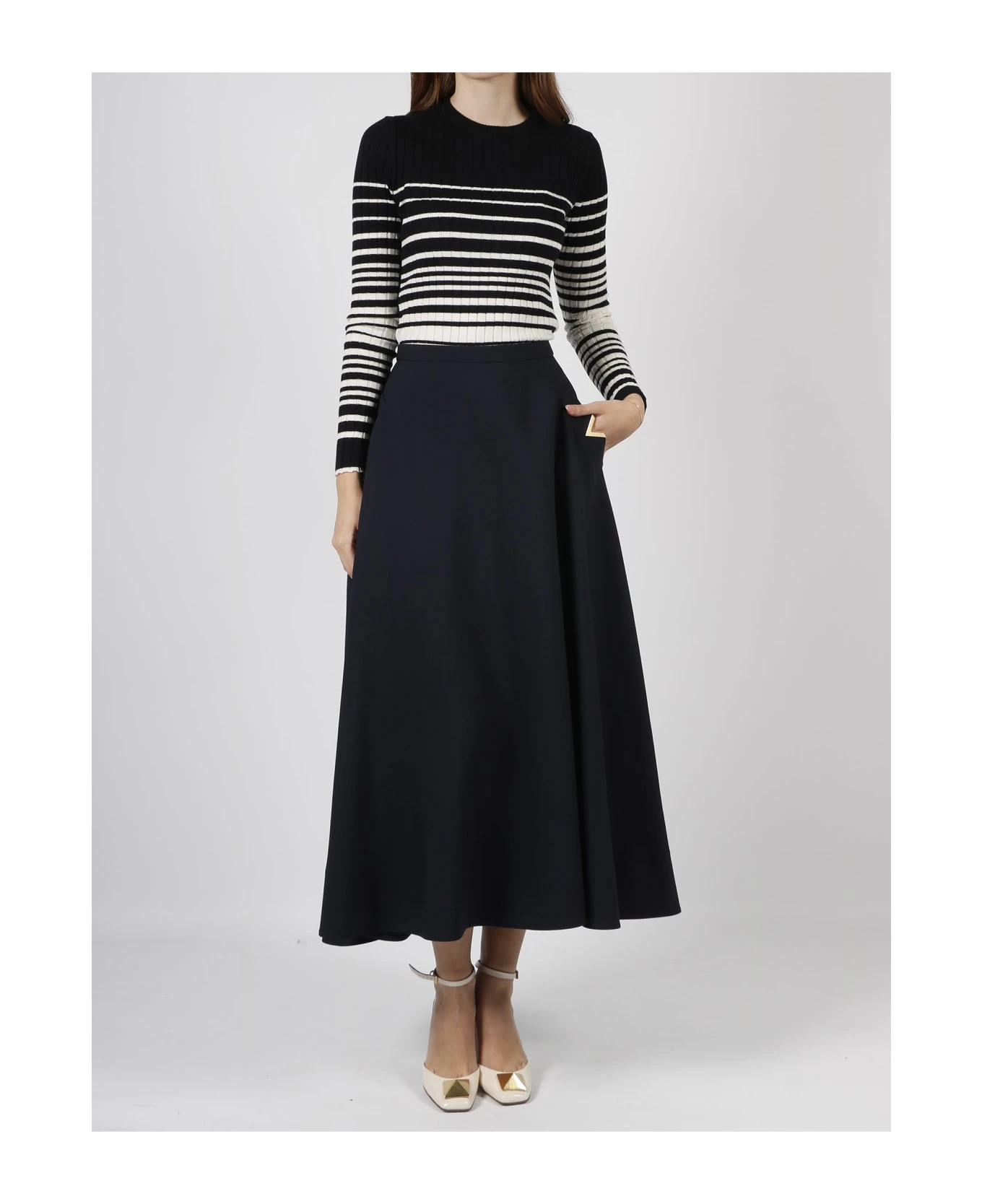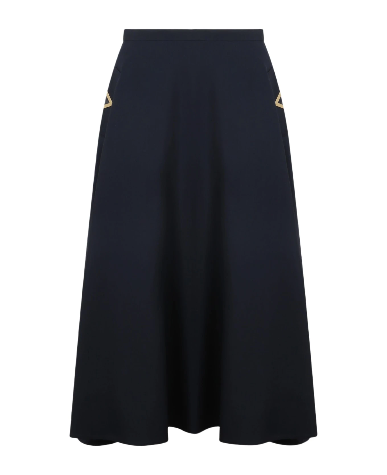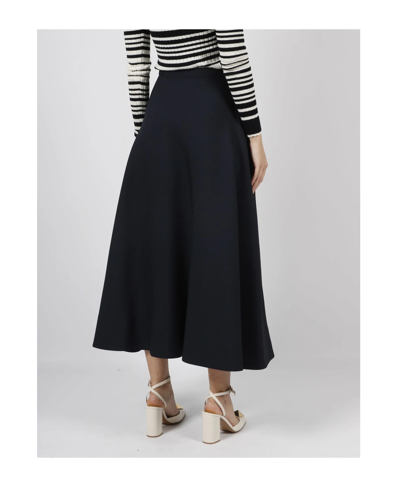 Valentino Garavani crepe couture midi skirt, with side V gold detail. – FW23