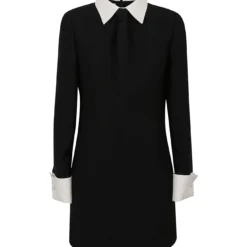 Crepe Couture dress BY VALENTINO GARAVANI. Back closure with zip and hook; poplin collar, cuffs and tie detail. Short fit design.