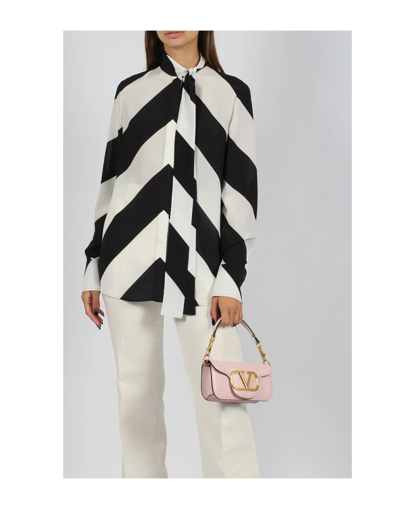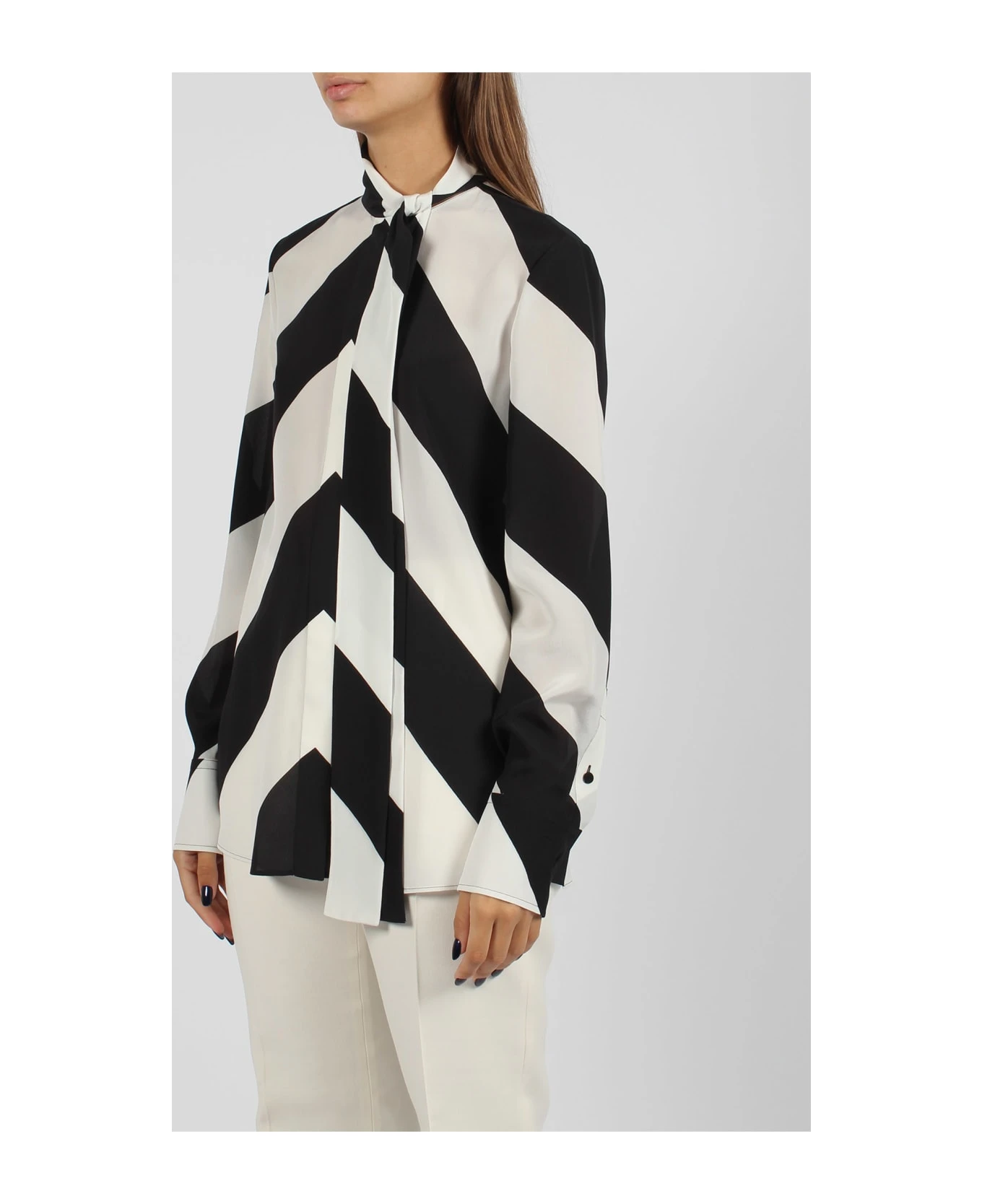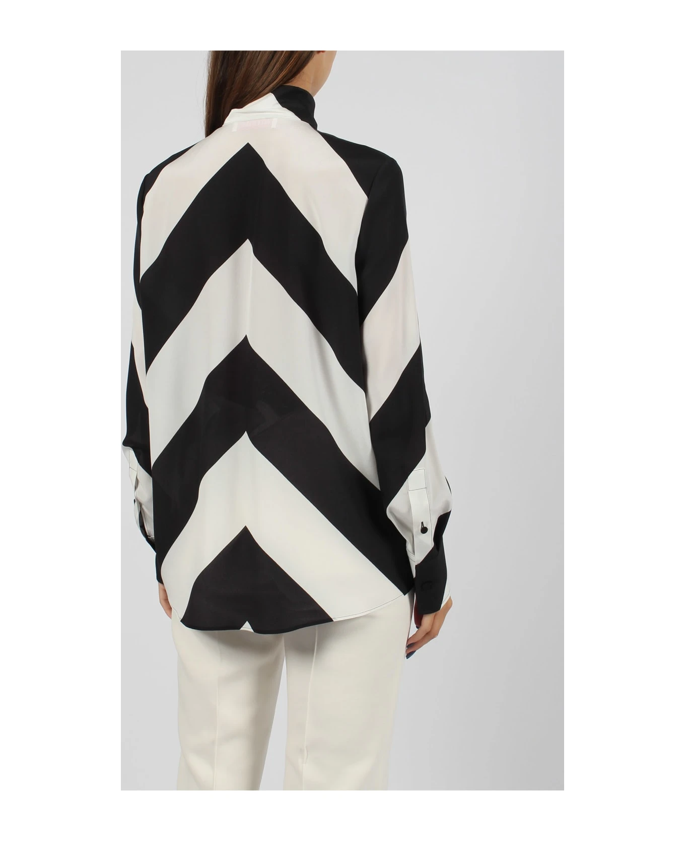 Valentino Garavani, in striped Crepe de Chine silk shirt. – FW23