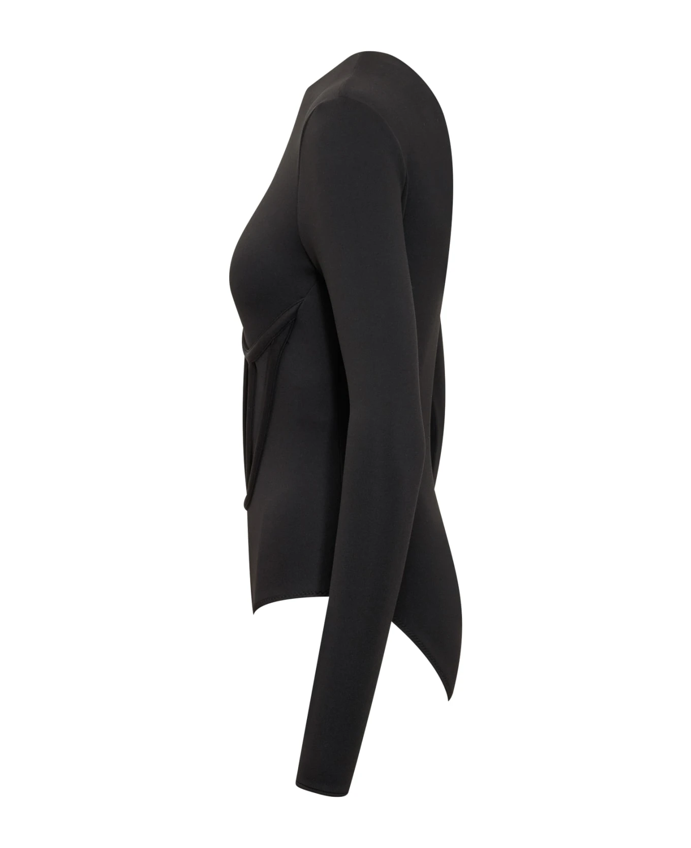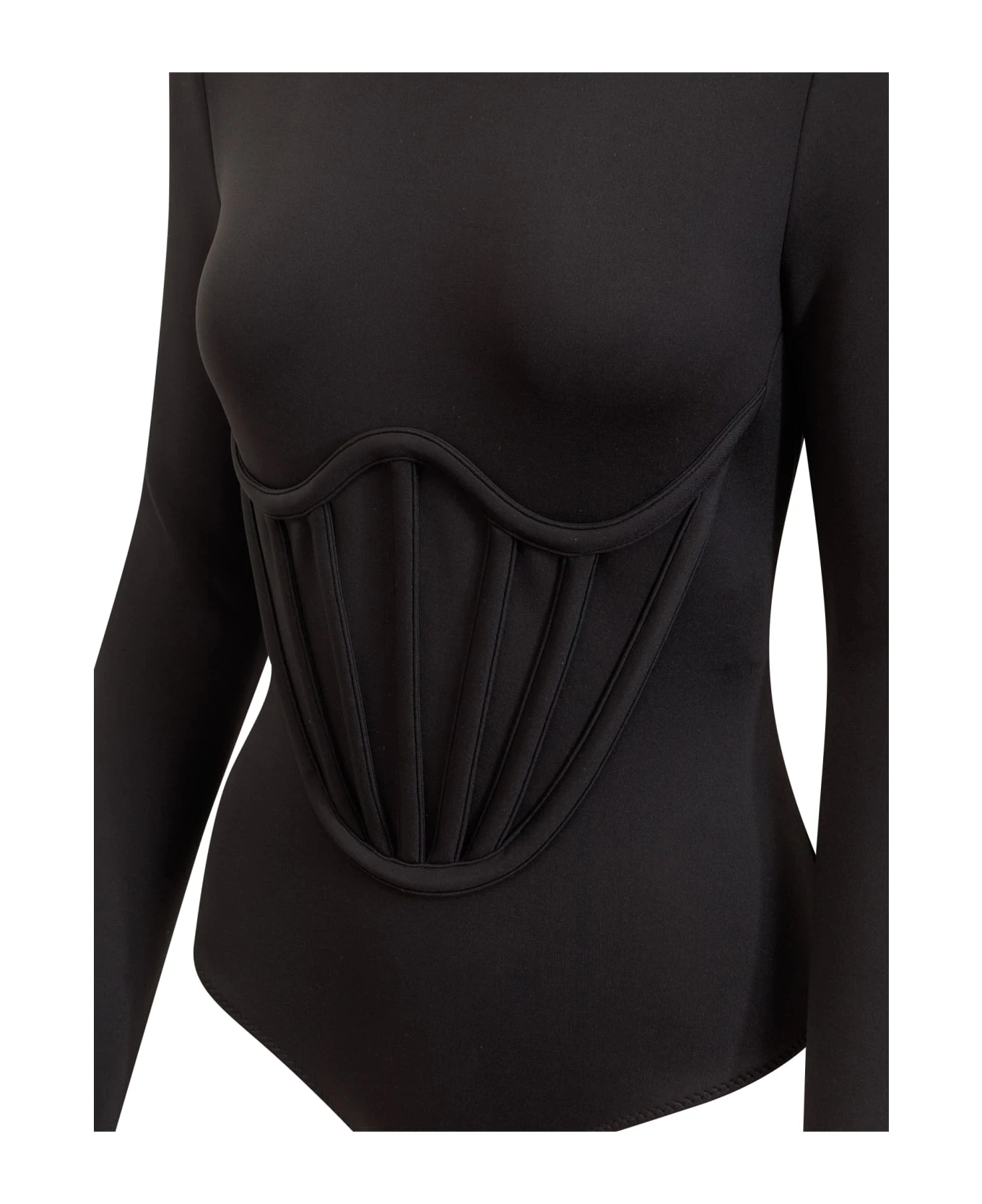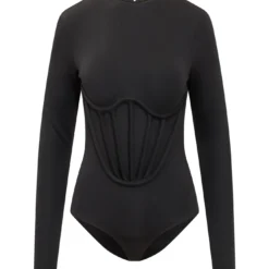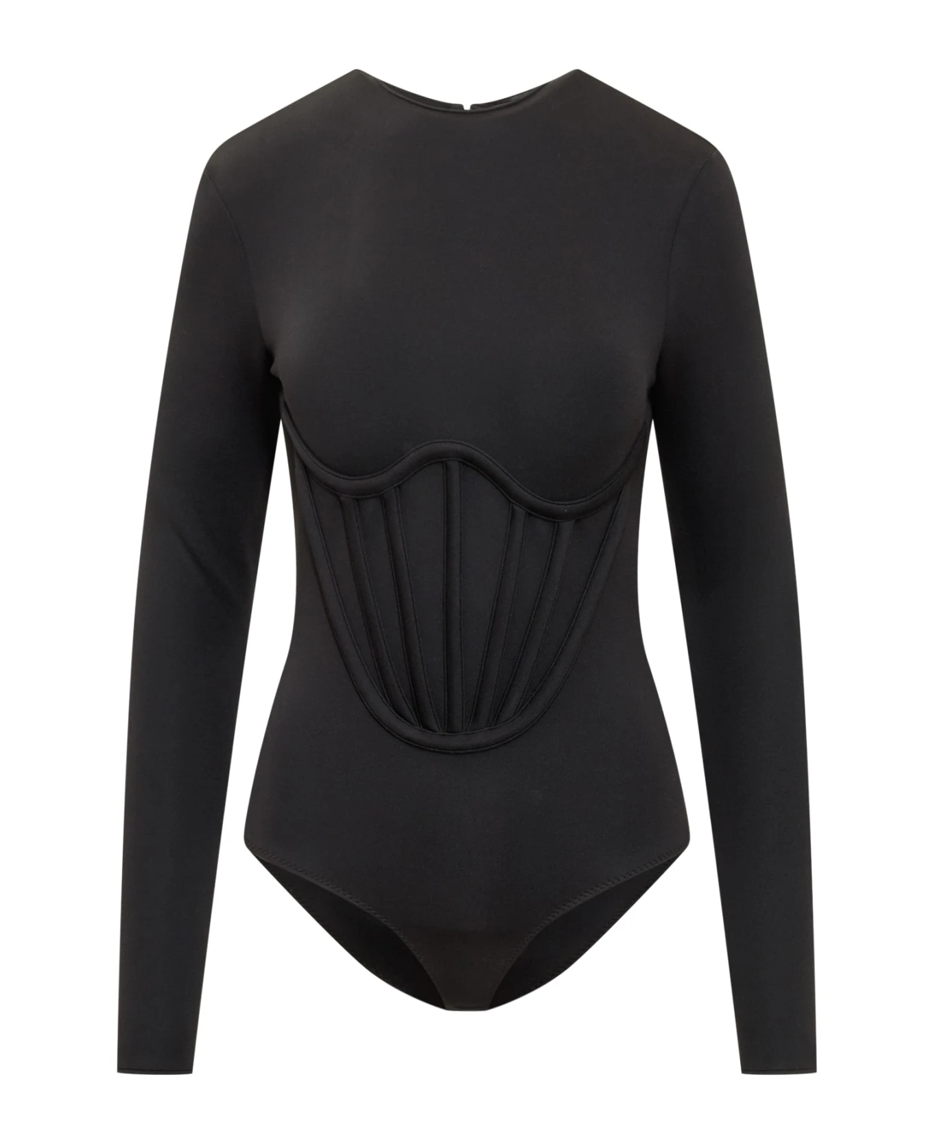 Long-sleeves bodysuit. Crewneck. Zip closure on the back.