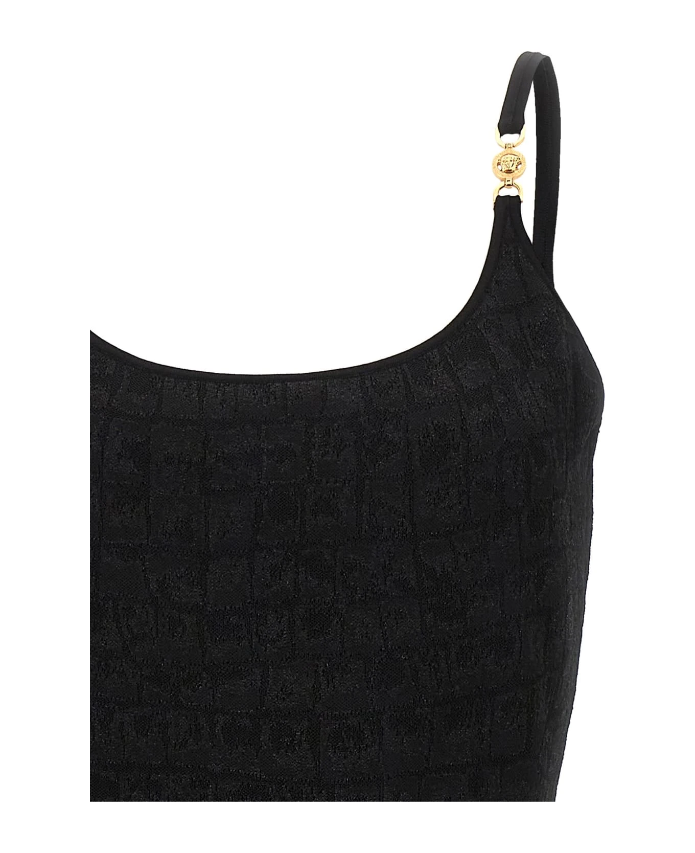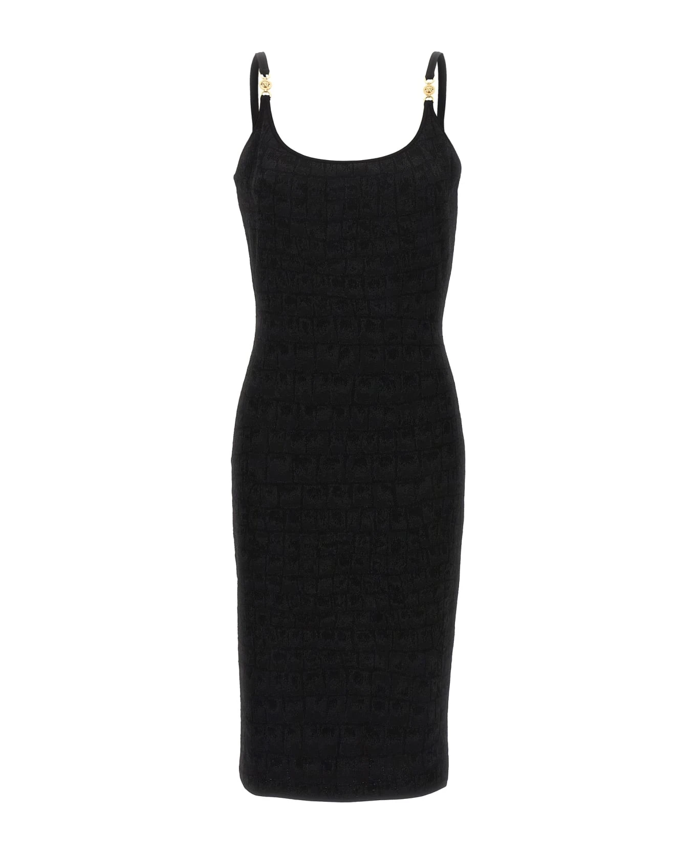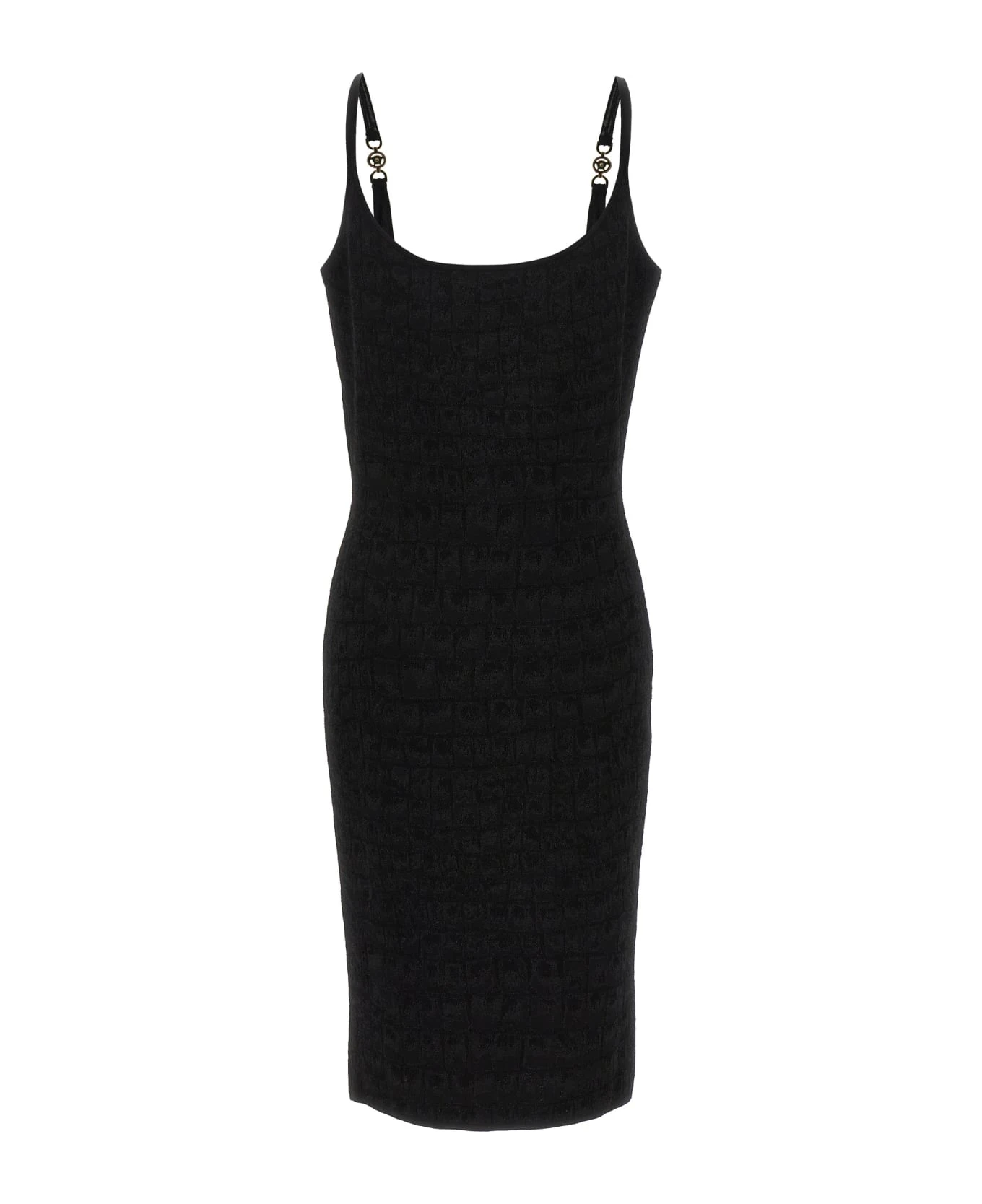 ‘Crocodile’ viscose dress with velvety crocodile devorè pattern, thin strap model with metal logo.