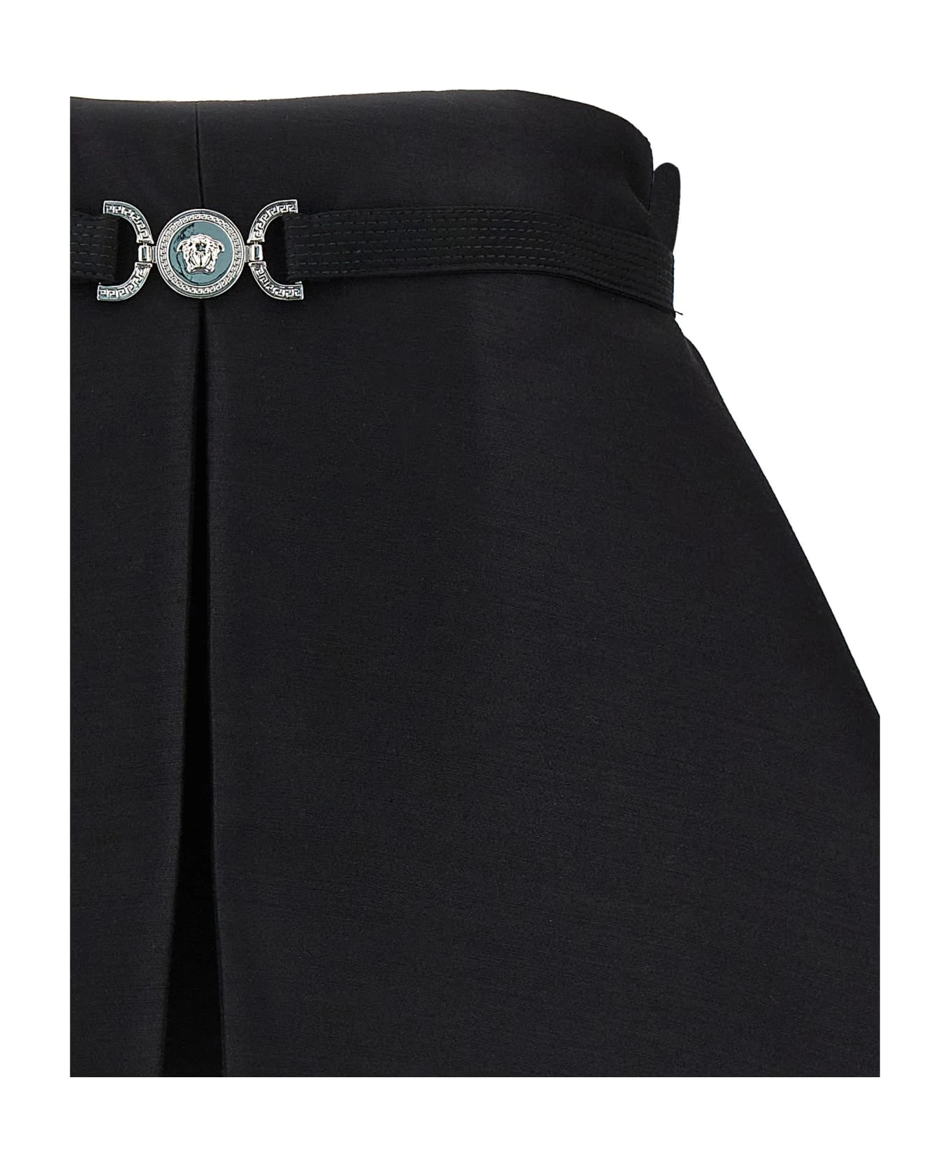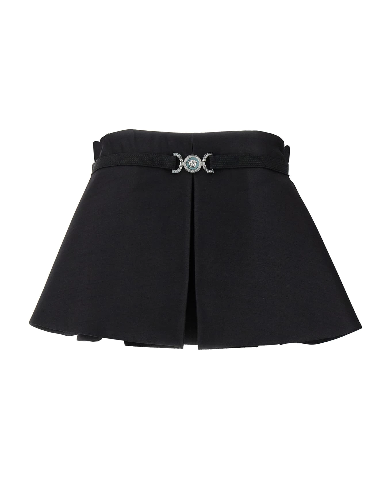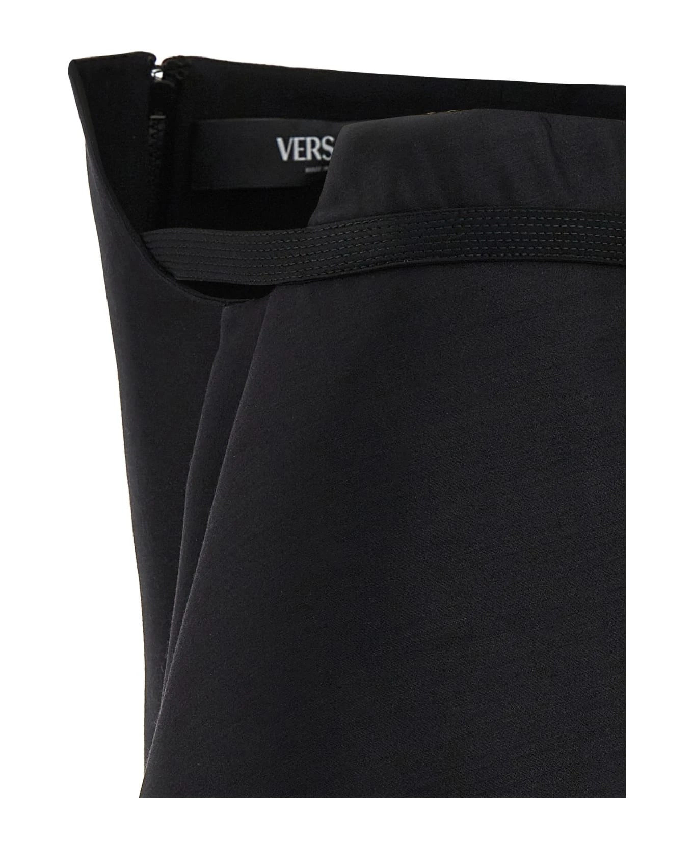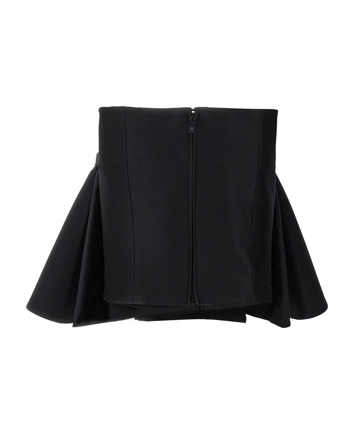 ‘Medusa 95’ top in wool and silk blend, model with rigid inner corset with front frappa with metal logo, strapless.