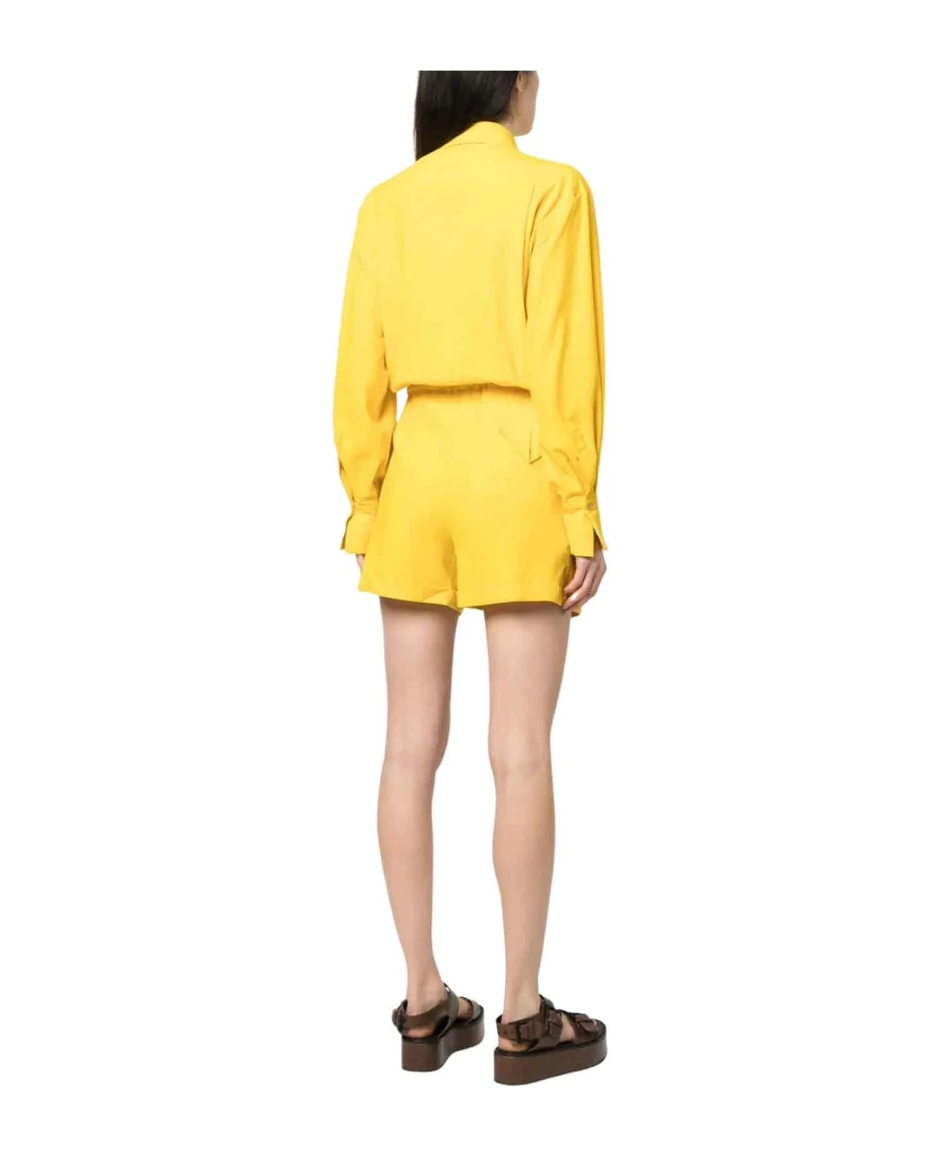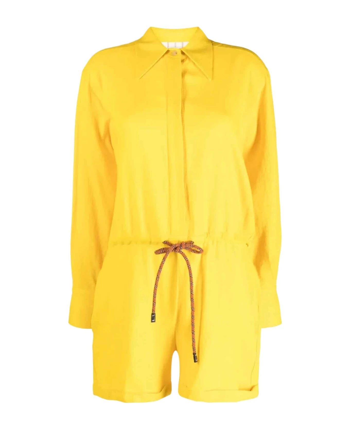 Yellow tracksuit women. Stretch design, classic collar, elasticated drawstring waist, concealed front button fastening, two side welt pockets, long sleeves and pleated brim Viscose 59%, Cotton 40%, Spandex/Elastam 1%